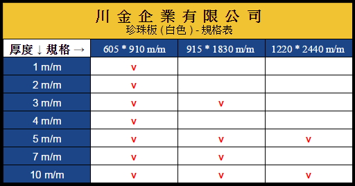珍珠板規格如下 :